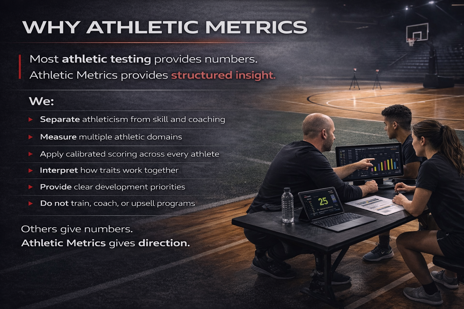 No. Athletic Metrics does not coach, train, or sell development programs. We provide objective measurement and interpretation only.
