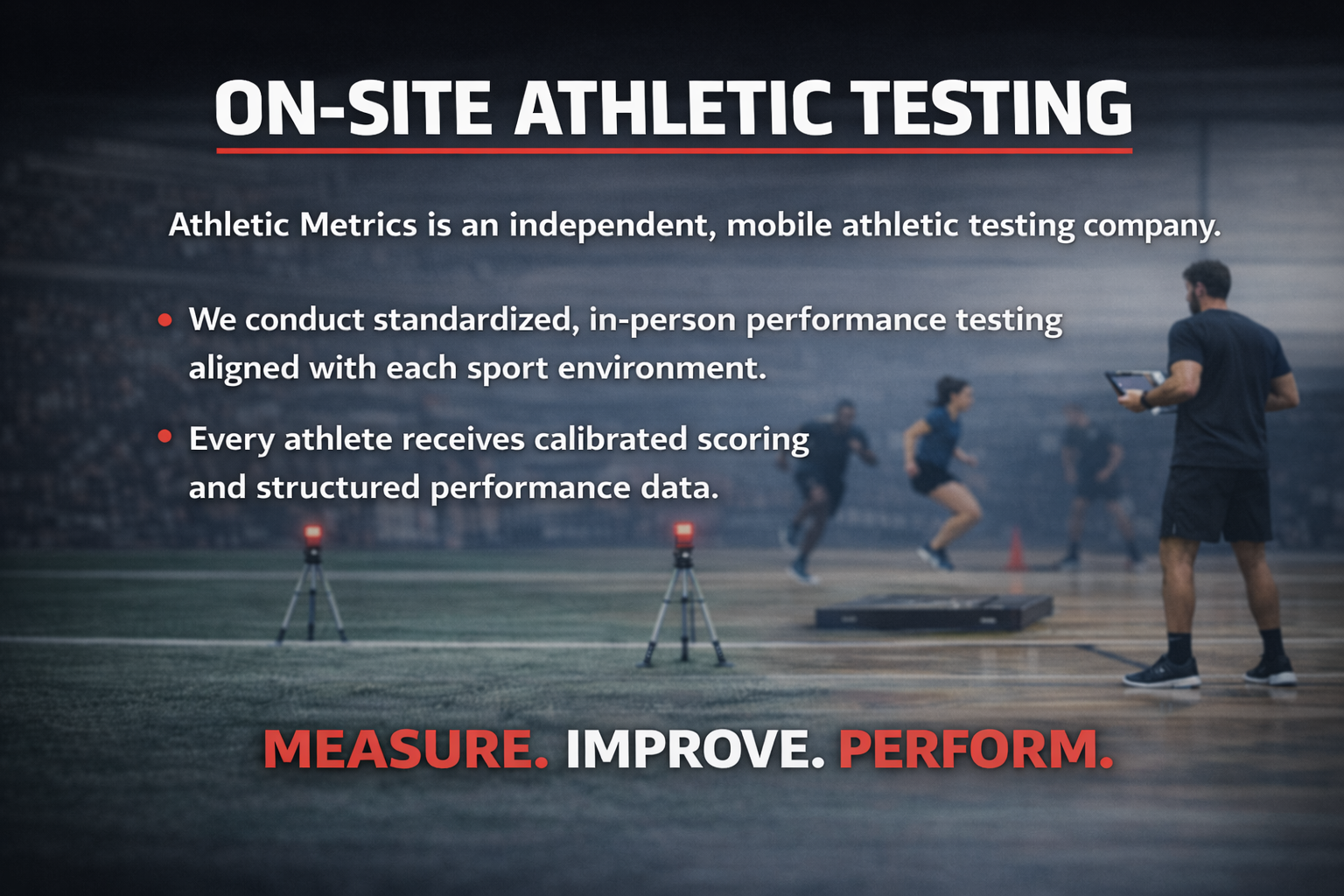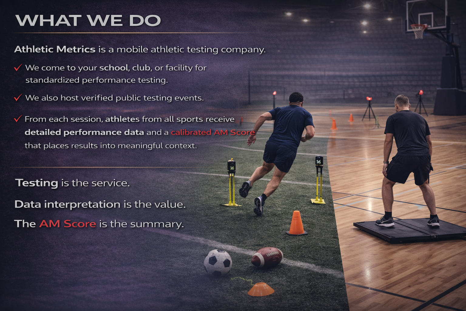 Athletic Metrics is a mobile, on-site athletic performance testing company for youth athletes. We host standardized testing events at schools, clubs, facilities, and through verified public testing days to provide objective performance data and clear development direction.