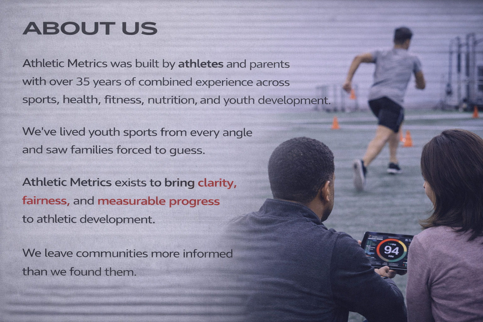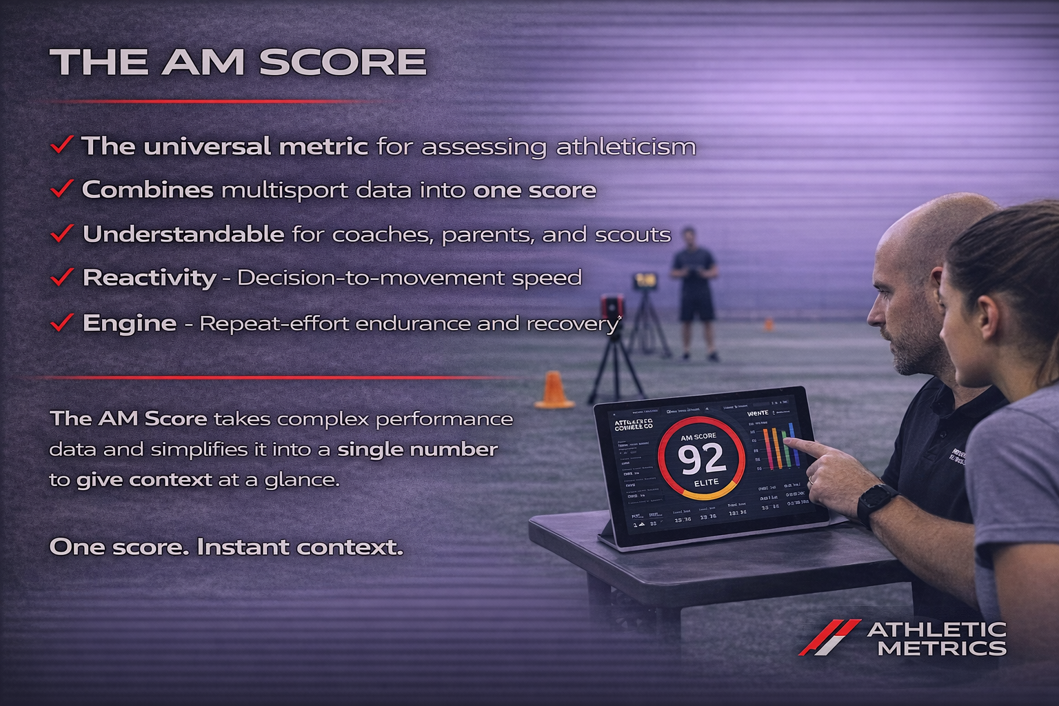 Each AM Score is calibrated by age and sex to ensure results are meaningful and fair. Athletes are not ranked publicly and are not compared against peers by name. Instead, the score provides a clear baseline and a consistent way to measure improvement over time.