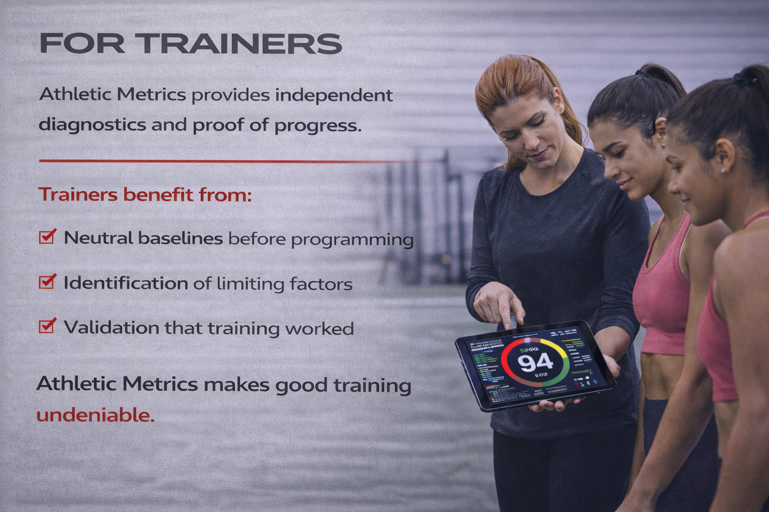 The result is a single, objective reference point that brings clarity to athletic development conversations and supports smarter training and evaluation decisions.